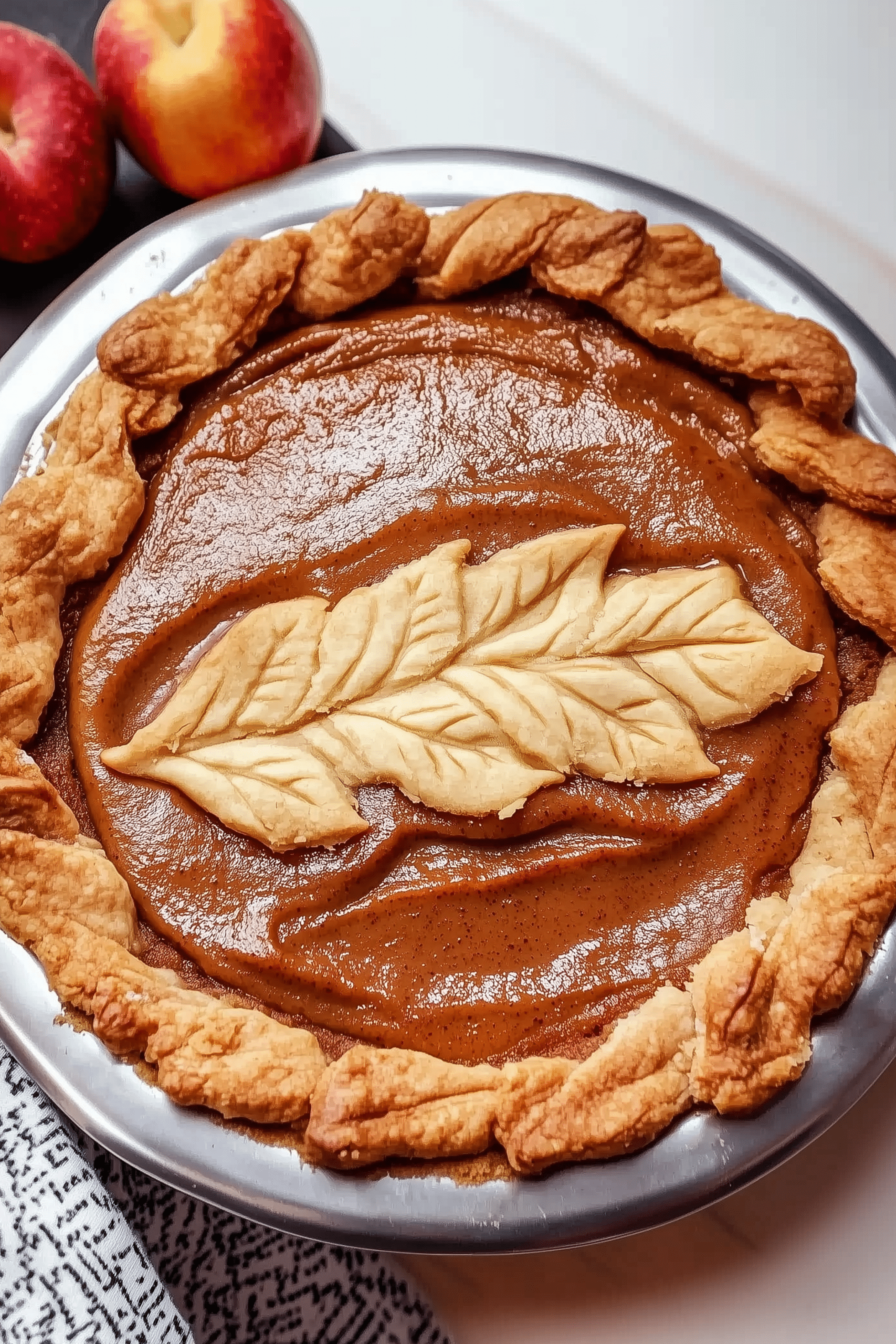 A creamy custard-style pie bursting with warm spices and rich apple flavor—perfect for fall celebrations.