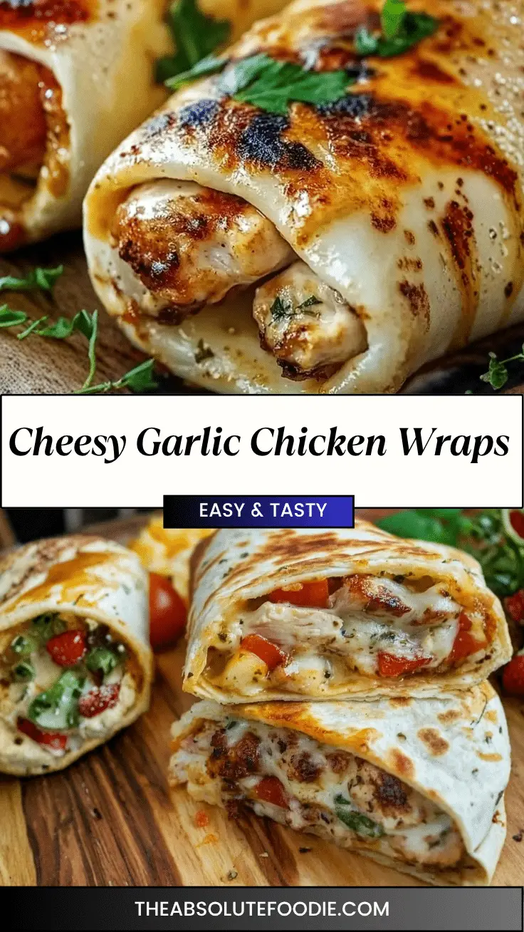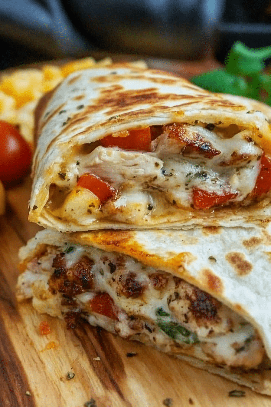These Cheesy Garlic Chicken Wraps are packed with creamy chicken, melted mozzarella, and bold garlic flavor, all wrapped in a crispy tortilla. A quick and satisfying 30-minute meal!