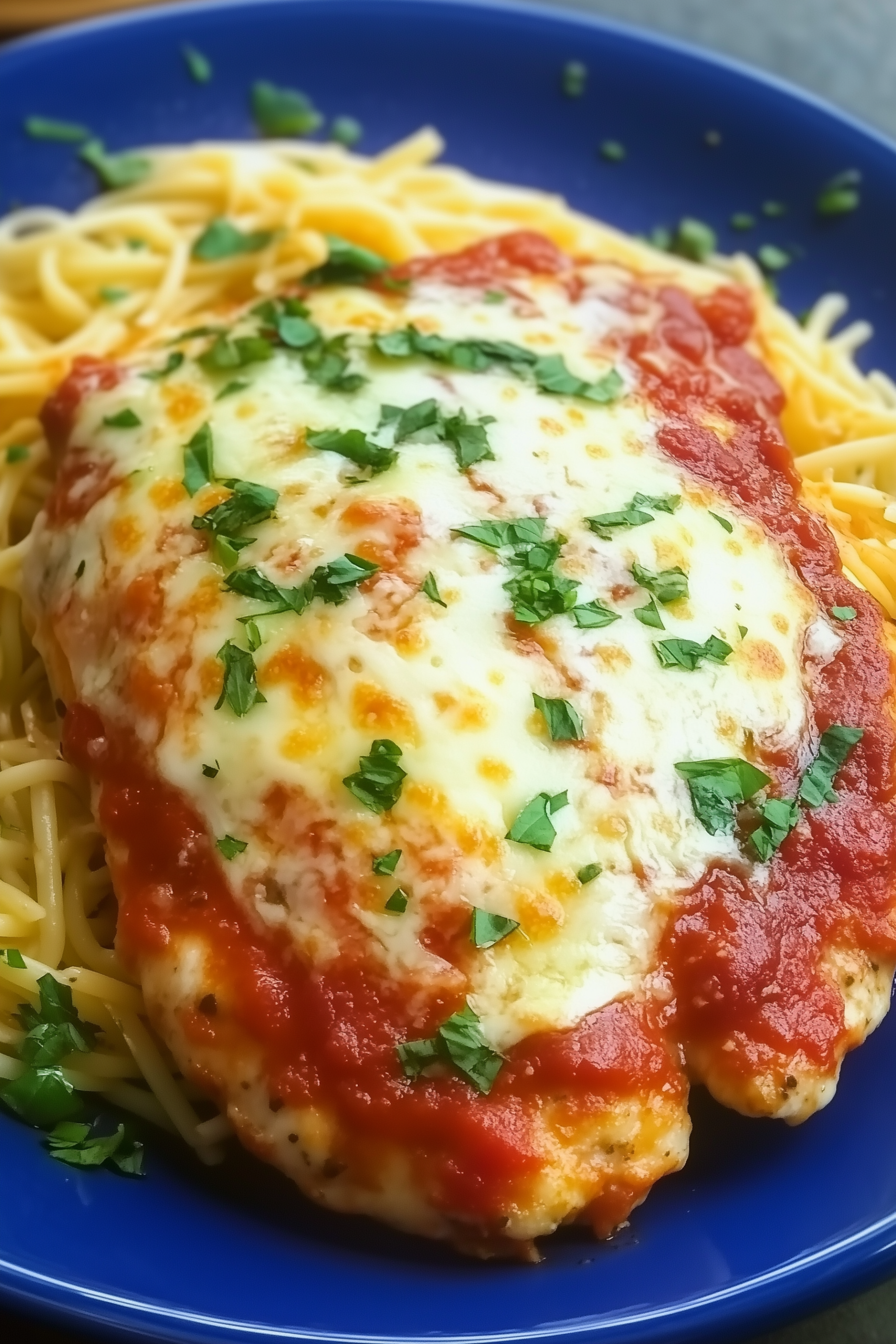 This Chicken Parmesan recipe delivers everything you want in a comforting Italian-inspired dinner: juicy, pan-fried chicken with a golden parmesan crust, smothered in rich marinara sauce and melted mozzarella. Baked to perfection and garnished with fresh herbs, it’s a weeknight-friendly recipe with restaurant-worthy results. Serve it over pasta or enjoy it with a side of garlic bread for the ultimate meal.