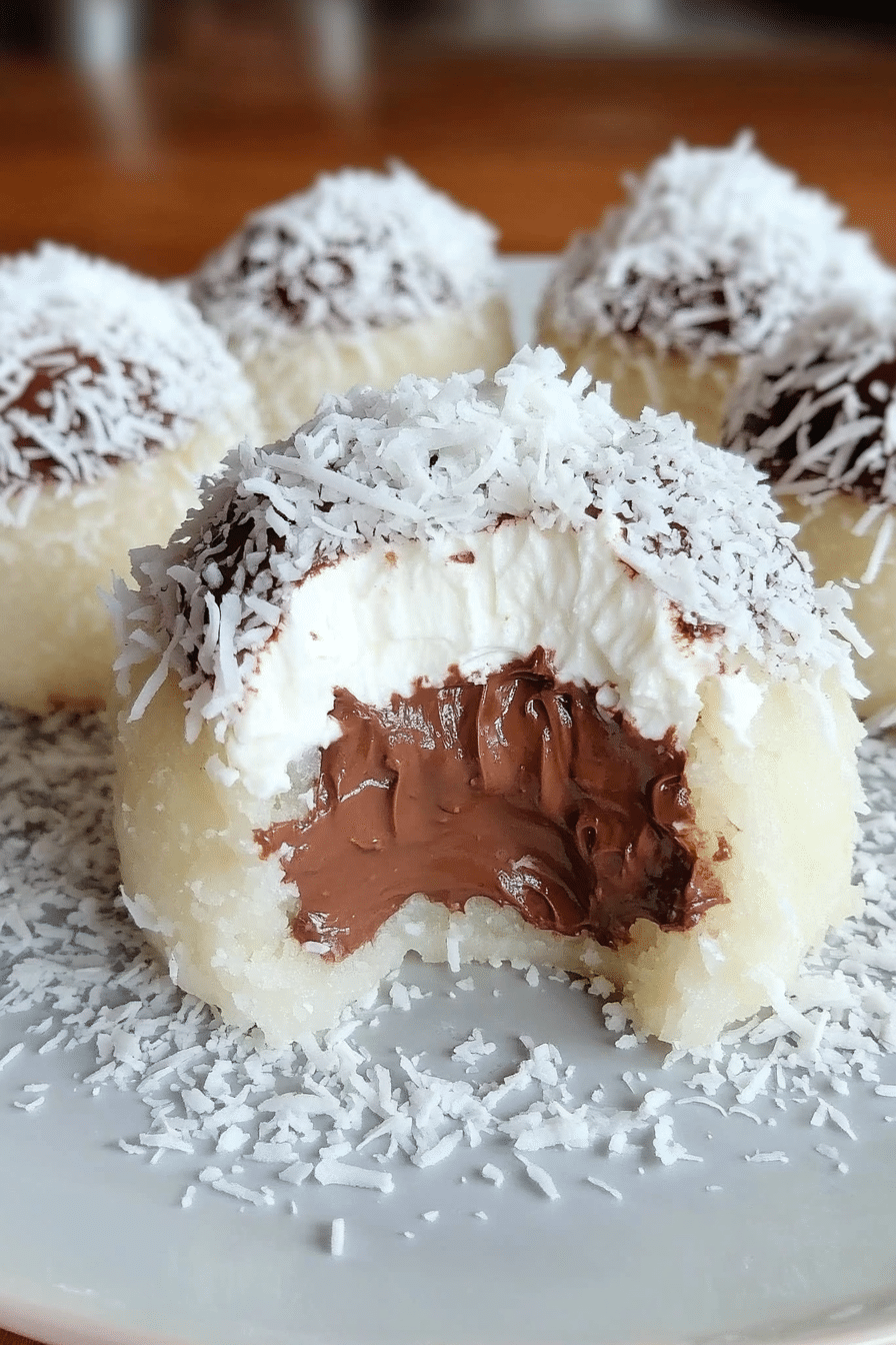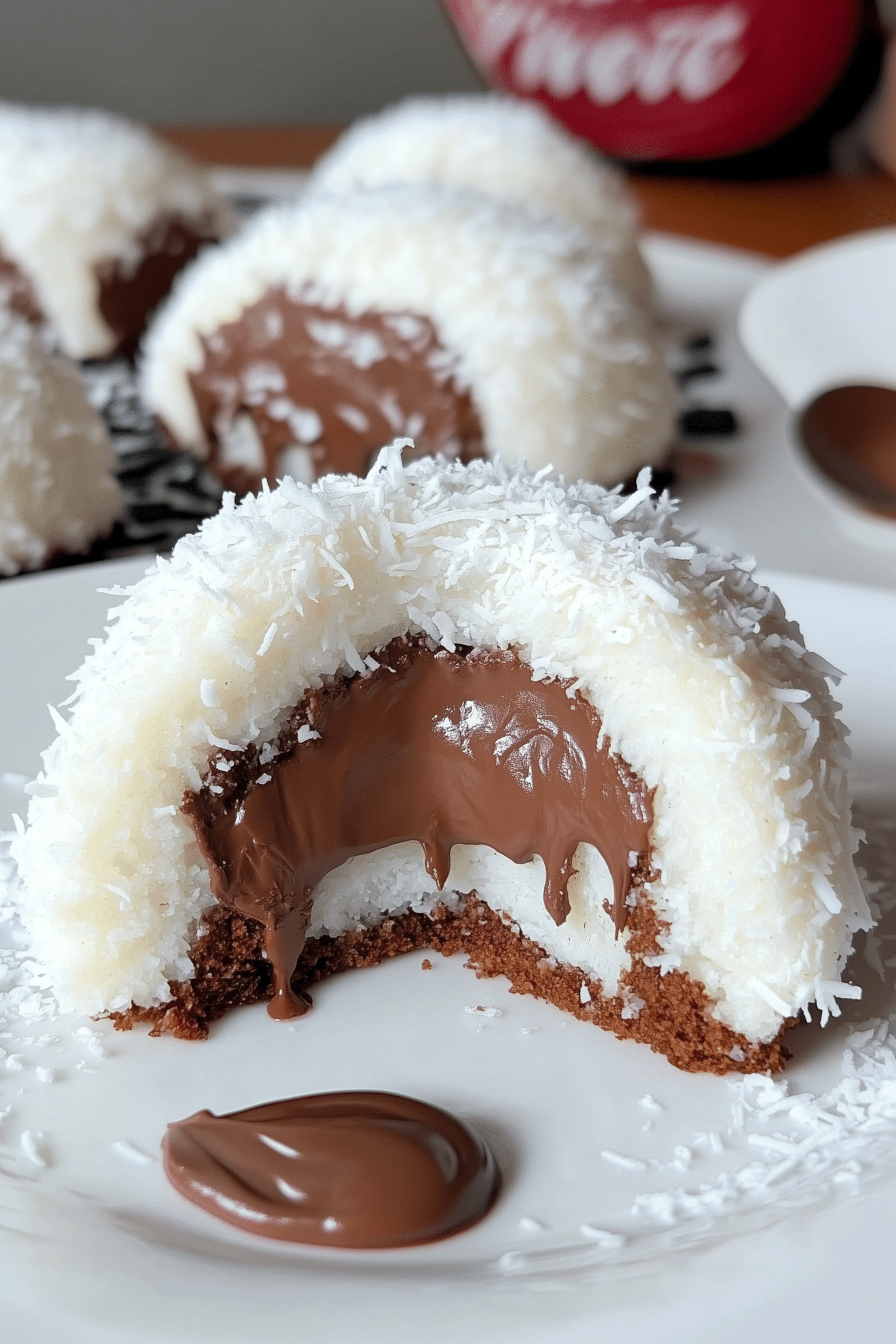 This dessert is the perfect balance of texture and flavor: airy coconut mousse, velvety chocolate spread, and crisp cocoa shortbread. It’s a refined, bakery-style dessert you can create at home with simple techniques. The mousse can be prepped in advance, making it an excellent choice for entertaining. Plus, the visual appeal of the glossy domes dusted with coconut makes them perfect for impressing guests—or just treating yourself.