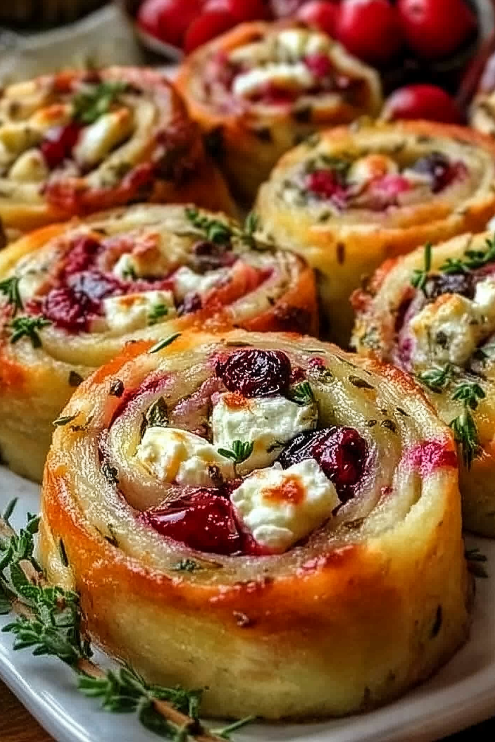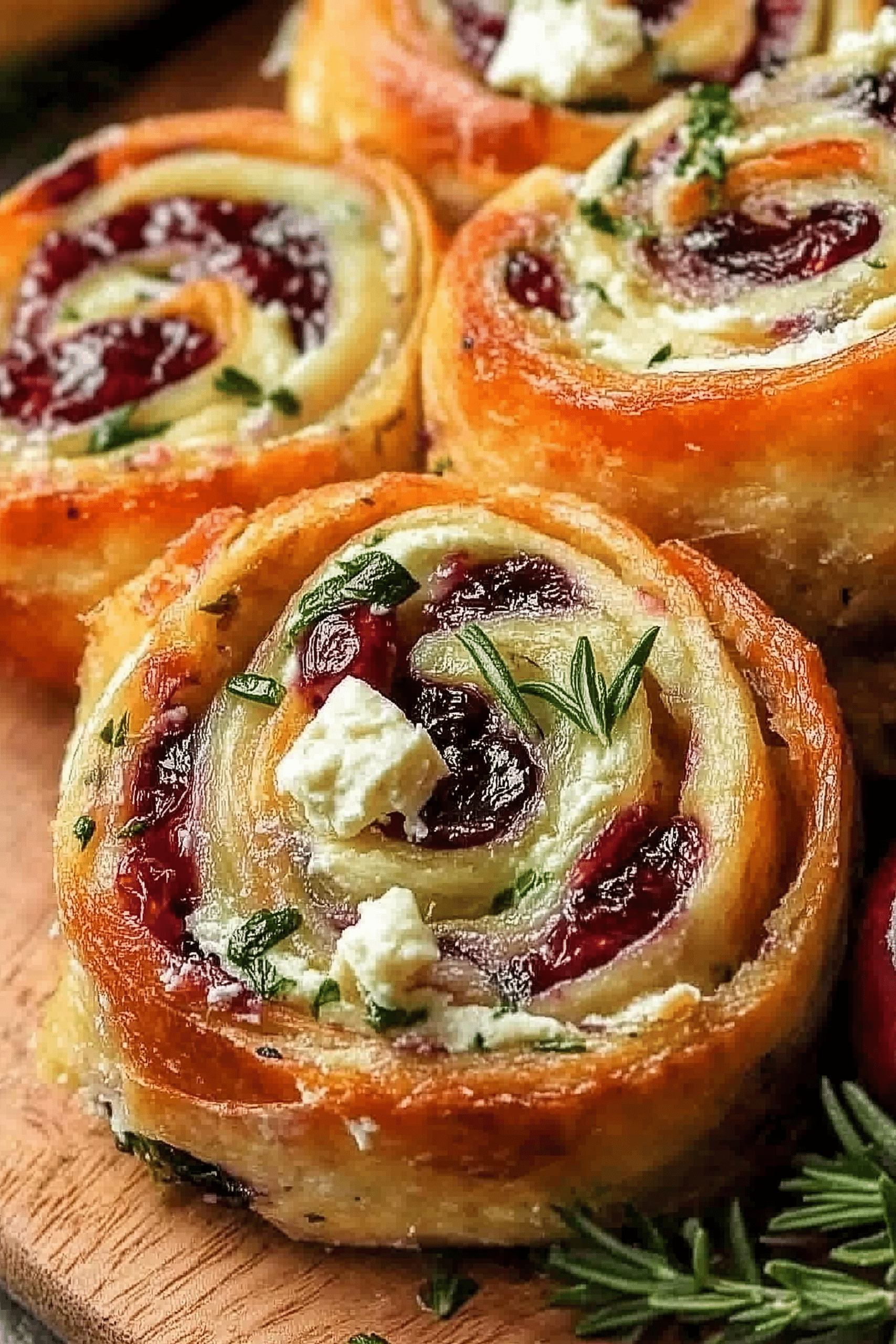 Cranberry Cream Cheese Pinwheels with Feta & Herbs