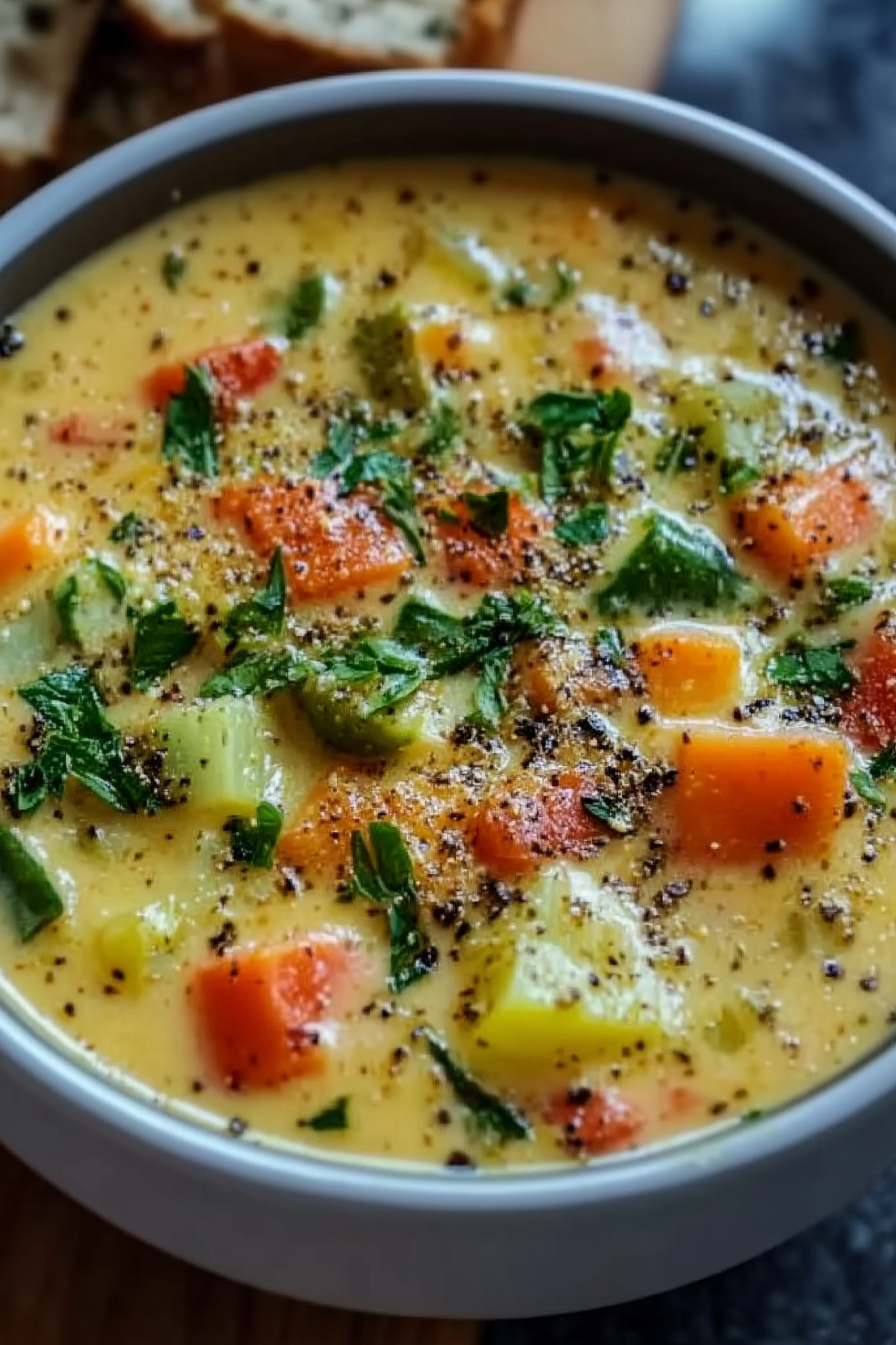 This Cream of Spring Vegetable Soup is a delightful celebration of the season’s freshest produce. Featuring tender baby carrots, red potatoes, and crisp bok choy in a subtly herb-infused coconut milk broth, it’s comforting without being heavy. Whether you’re enjoying a light lunch or a cozy dinner, this plant-based soup brings warmth, nourishment, and garden-fresh flavor to your table.