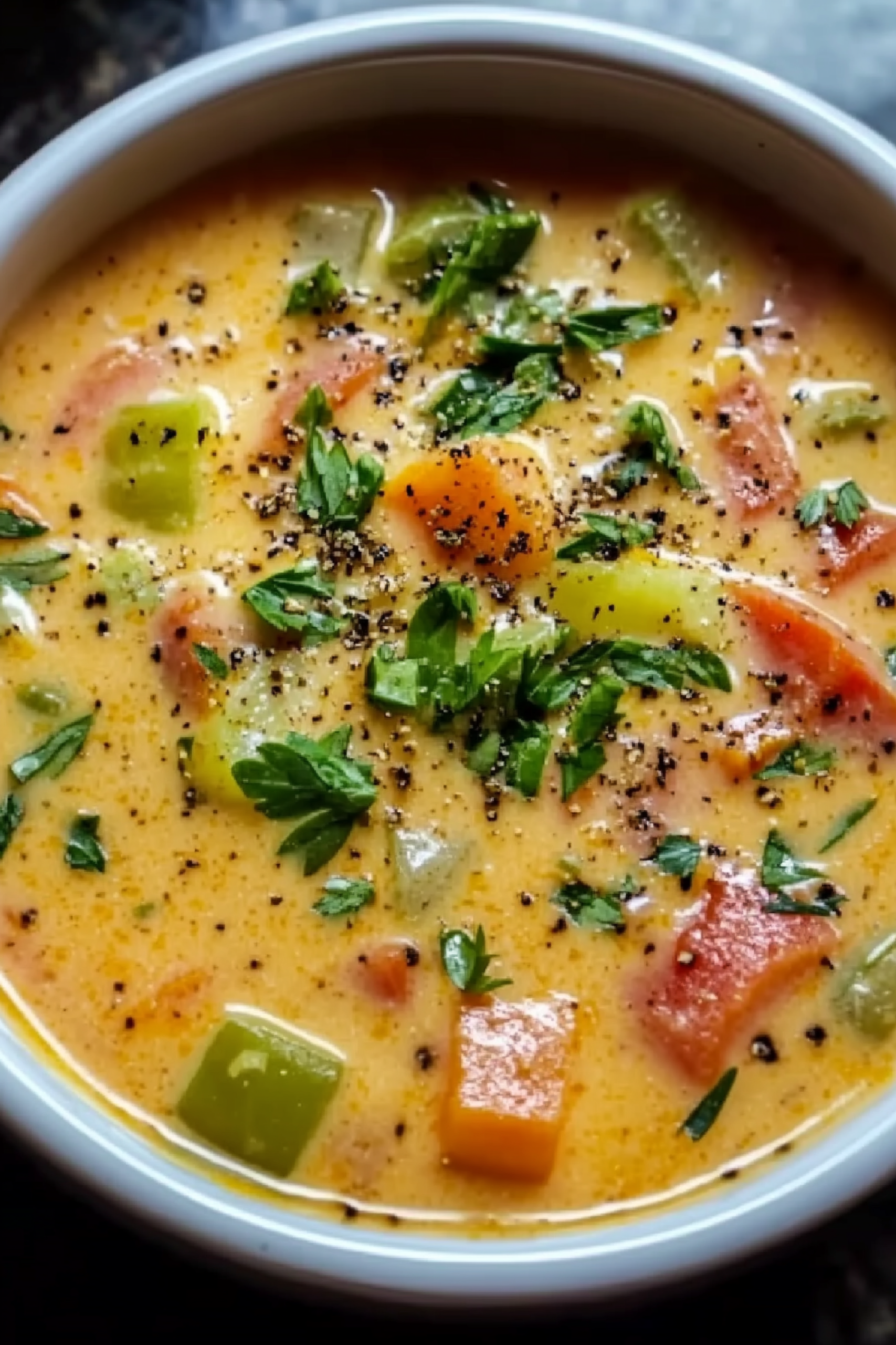 - Ladle into bowls and garnish with fresh chives or parsley. Enjoy hot.