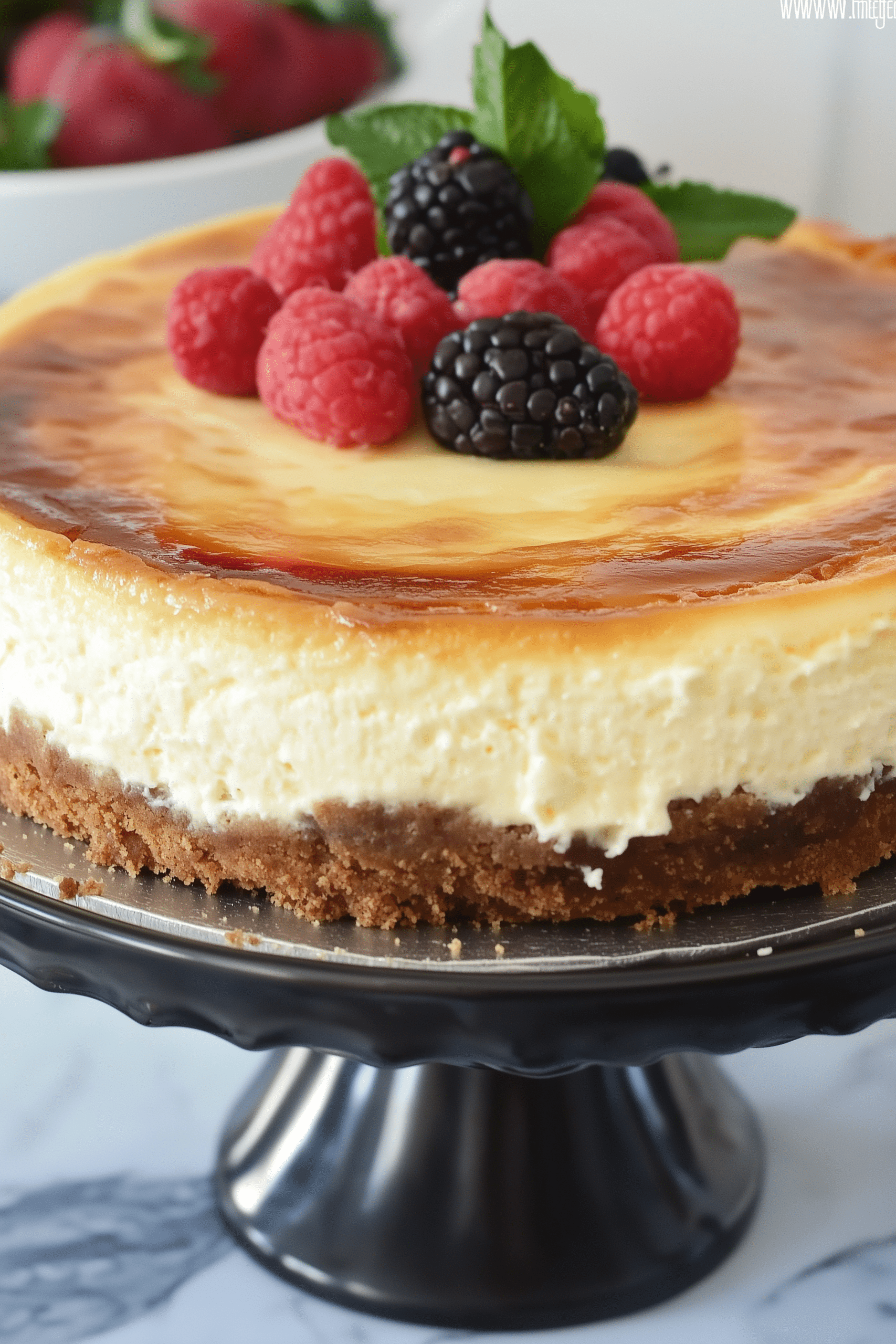 - Foolproof water bath method: Prevents cracks and ensures even baking.