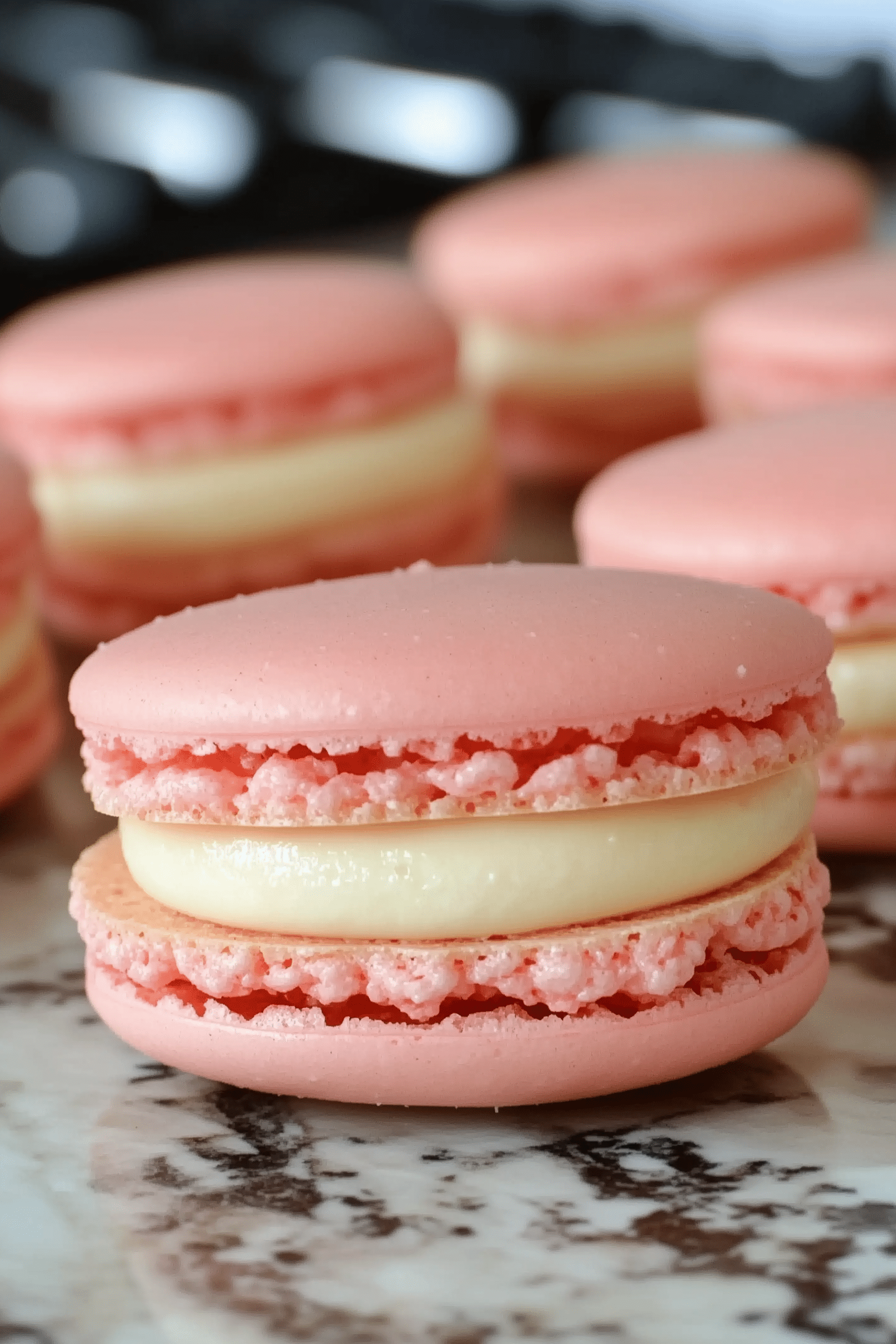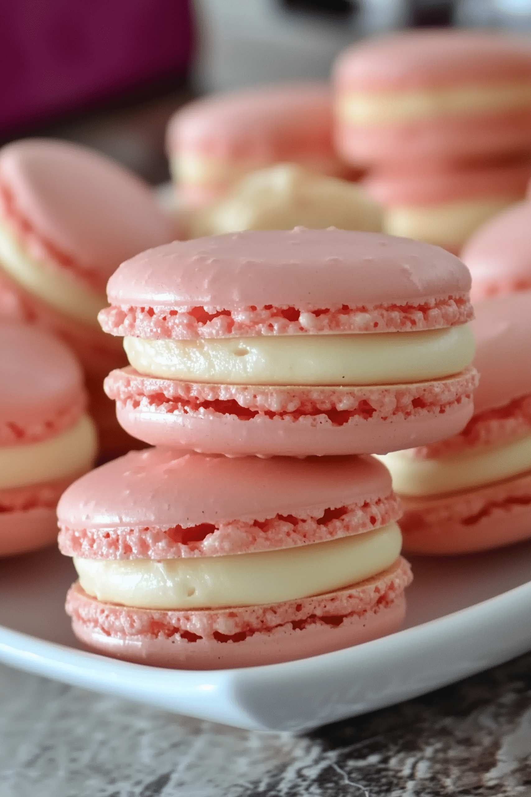 Macarons may seem intimidating with their crisp shells, chewy centers, and smooth tops—but this recipe makes them approachable for any home baker. With strawberry-scented shells and a classic vanilla buttercream filling, these pretty pastries are as delicious as they are elegant. Whether for a celebration or a special treat, mastering macarons is well within your reach.