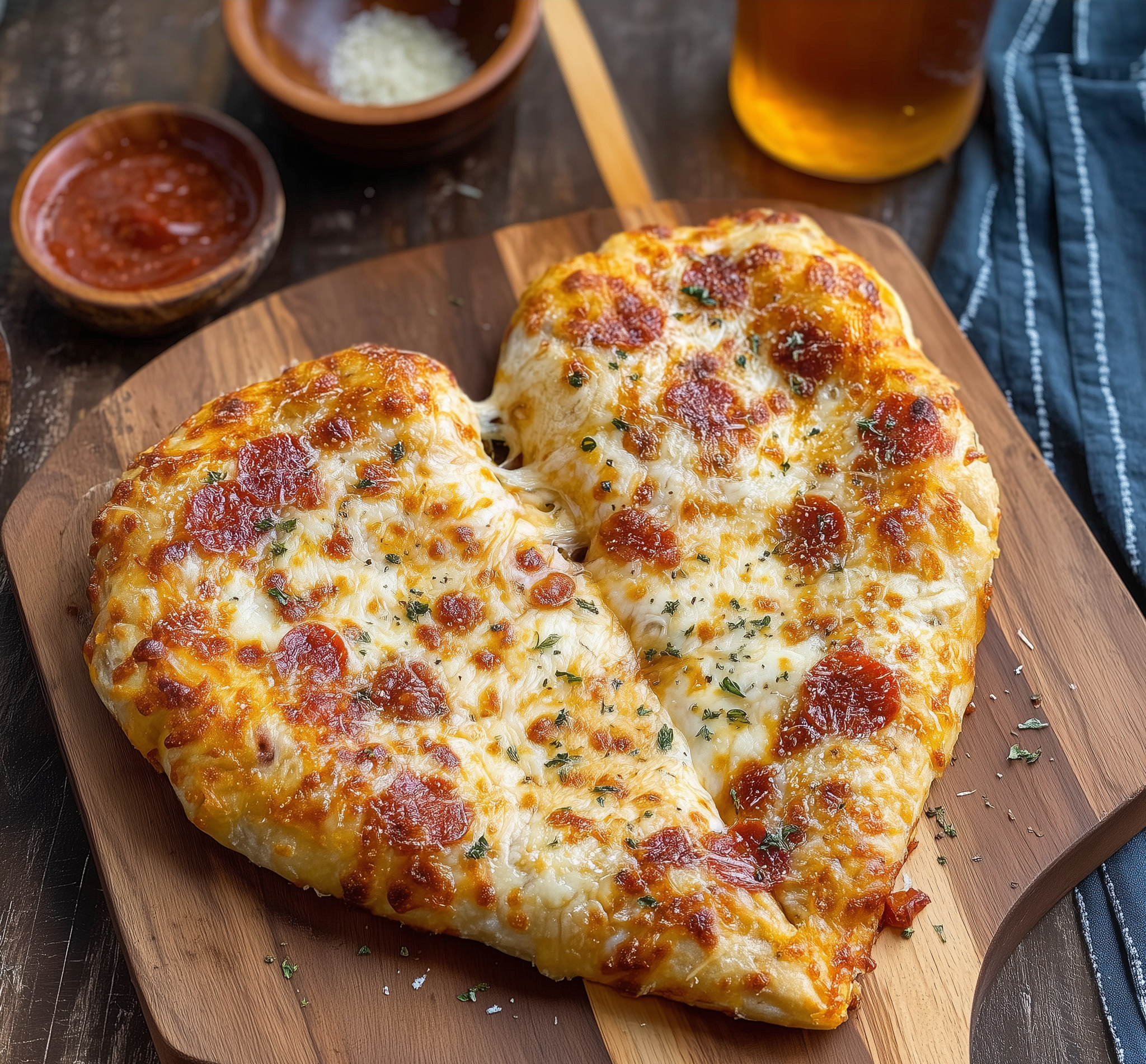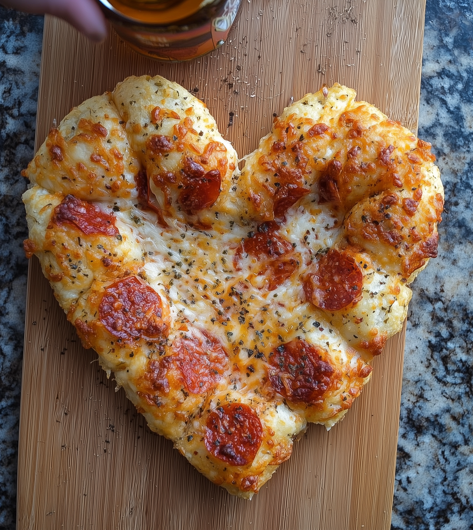 Nothing says “I love you” like a homemade heart-shaped pizza with gooey stuffed crust and heart-shaped pepperoni. Perfect for Valentine’s Day, anniversaries, or romantic nights in, this pizza is as fun to make as it is to eat.