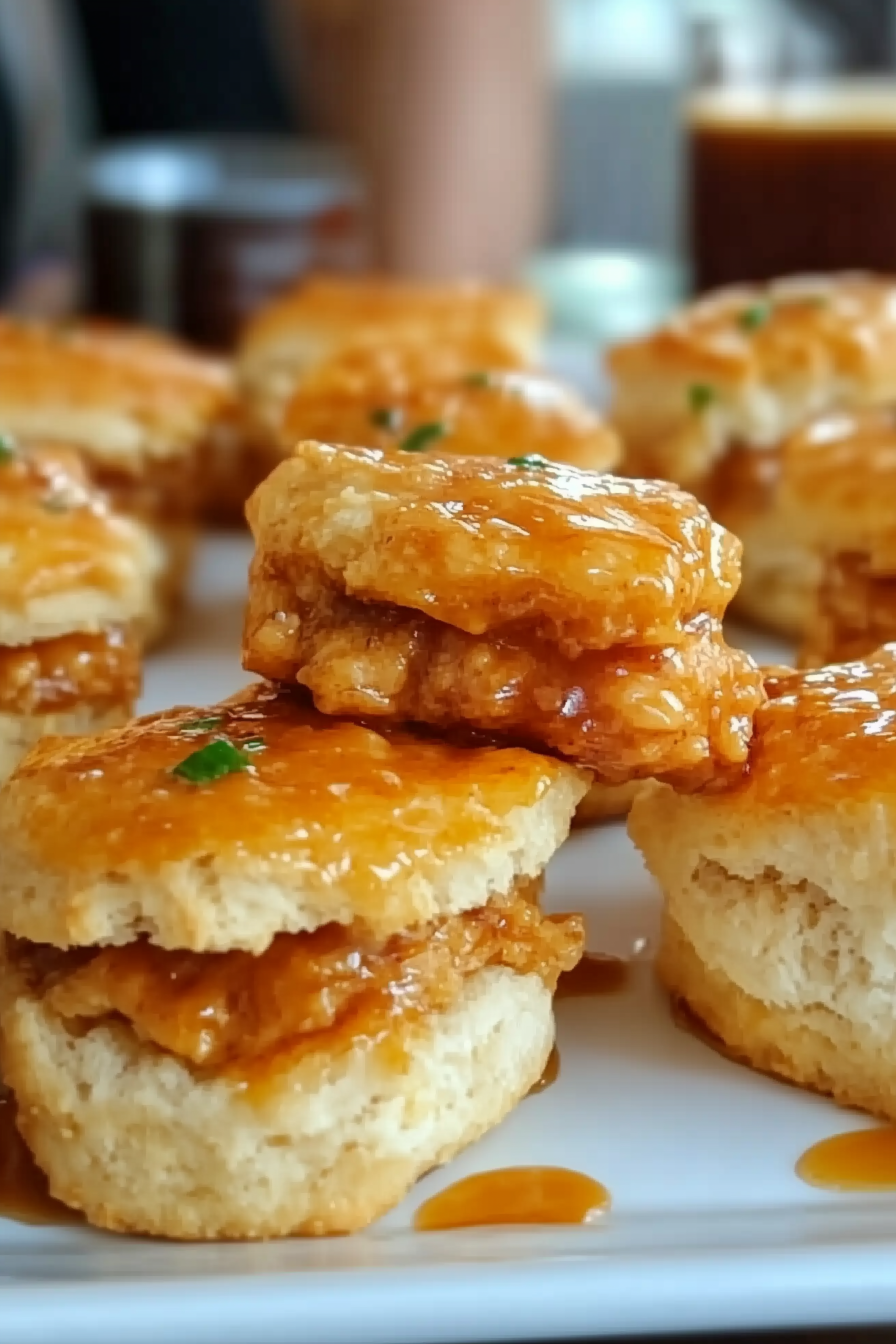 Southern comfort meets spicy-sweet bliss in these crispy, buttery chicken biscuit sandwiches with a hot honey drizzle.