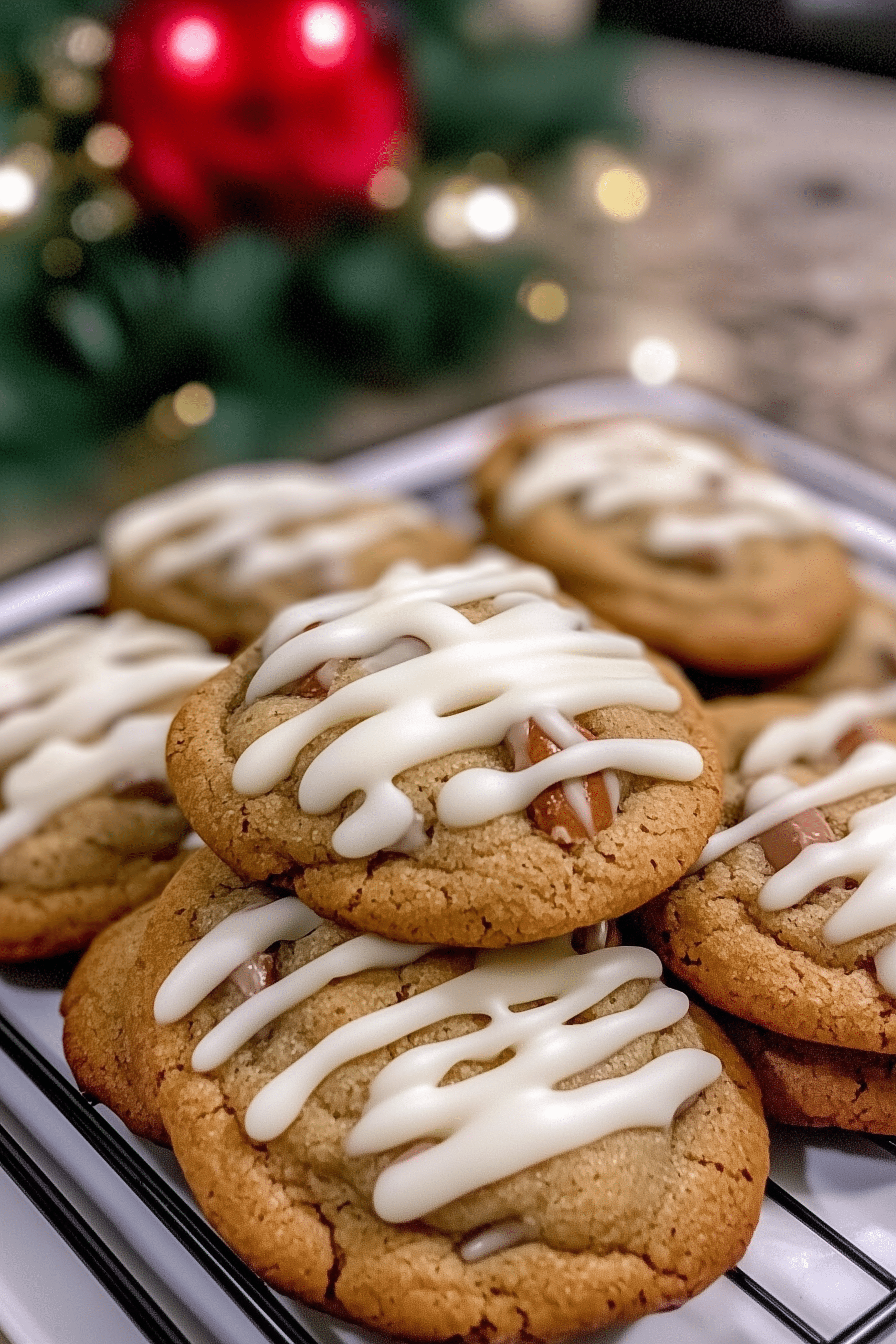 These Chewy Maple Cinnamon Cookies with White Chocolate are the kind of treat that make you stop mid-bite and say wow. Soft, chewy, and warmly spiced with real maple syrup and cinnamon, these cookies are dipped and drizzled with silky white chocolate and finished with festive holly berry sprinkles—making them a perfect holiday (or Halloween!) cookie. This recipe is based on the beloved chewy maple cookie base by Cooking with Carlee, made a little extra special with some easy yet elegant decorating.