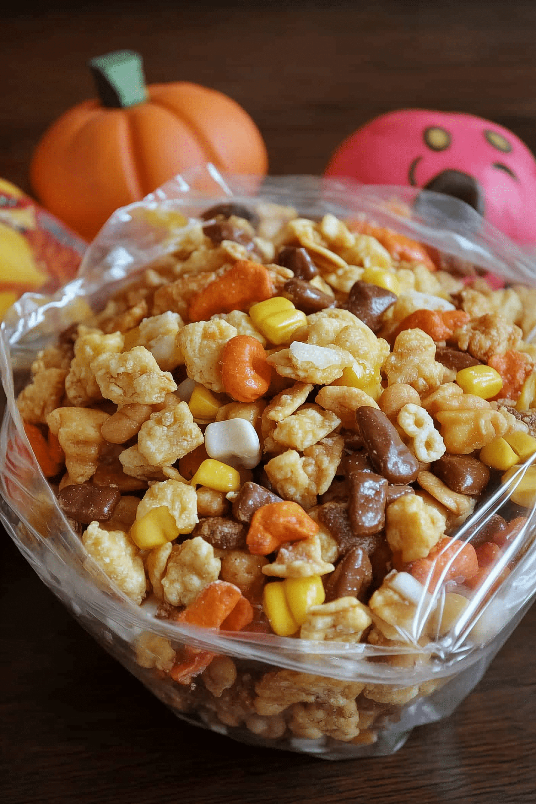 - Serve in a large bowl for parties or divide into small bags. Tie with festive ribbon for gifts or Halloween favors.