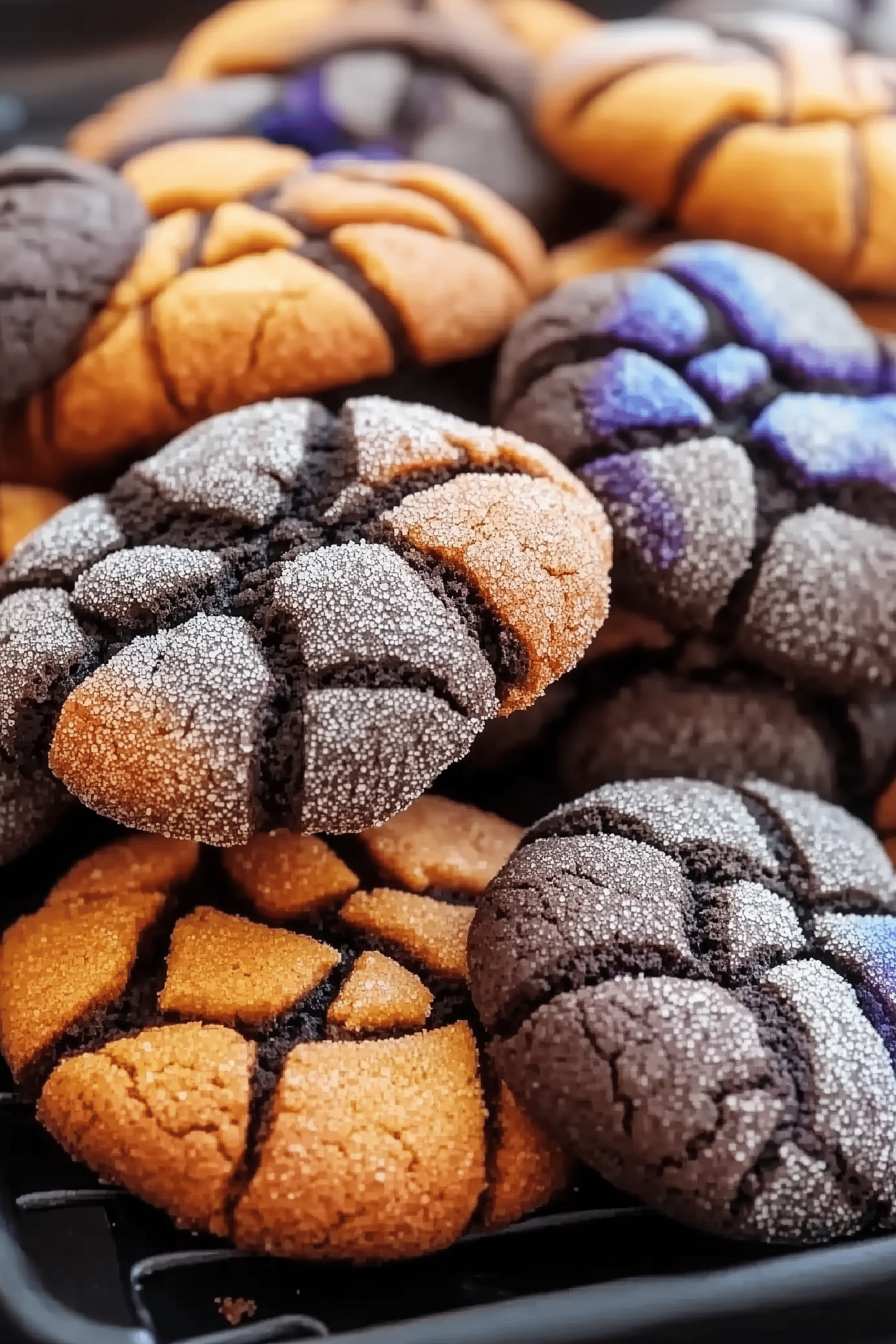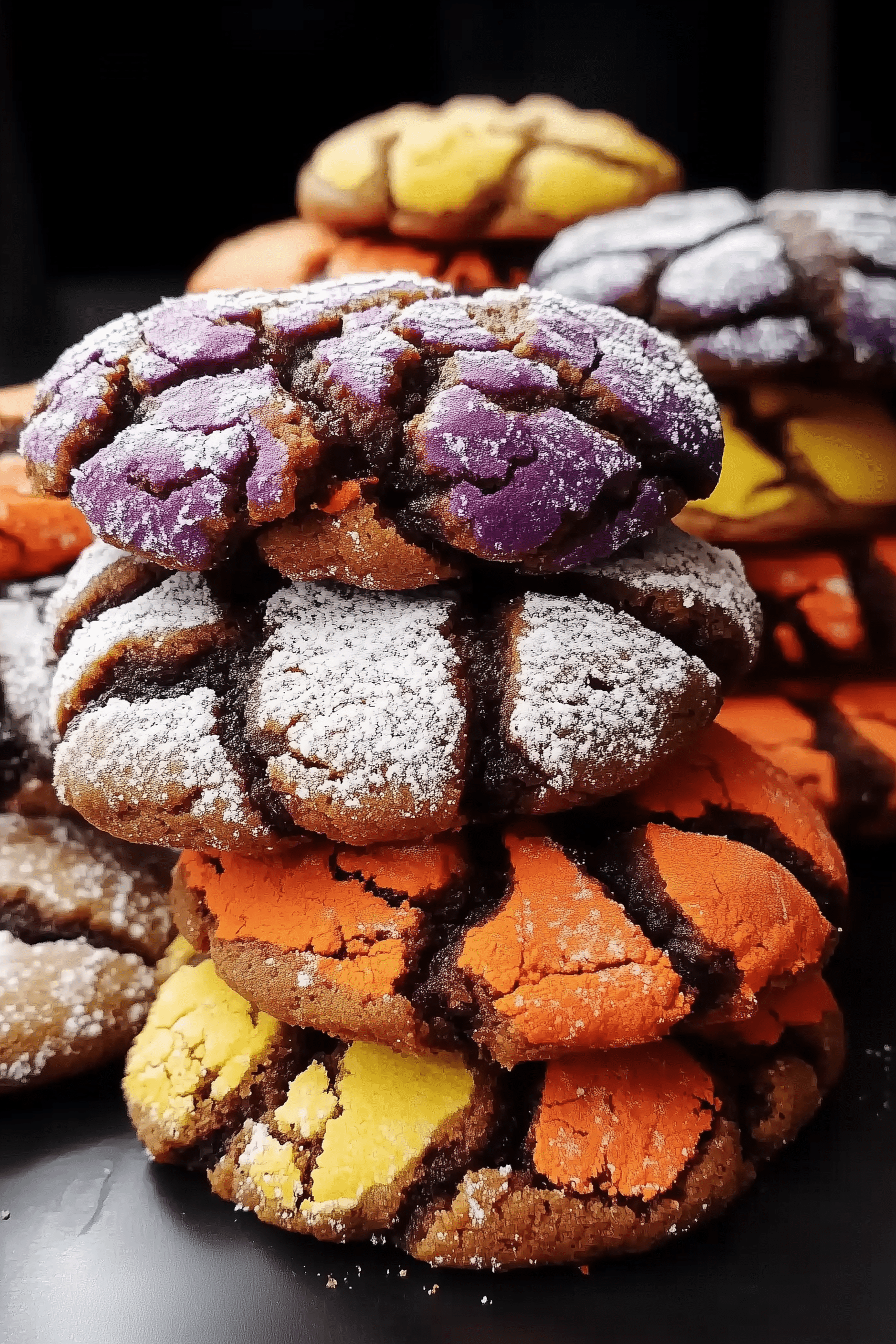 Soft, colorful crinkle cookies with spooky vibes and a festive sugar-dusted finish — perfect for your Halloween dessert table!
